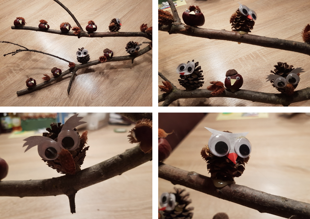 Die Umsetzung war – sagen wir mal – kreatives Chaos. Zuerst suchten wir einen Stock, der stabil genug für eine Eulen-WG ist. Dann kam die Feinarbeit: Papier für Schnäbel, ein bisschen Filz für Flügel (oder war es doch ein altes Wollknäuel?), und wackelige Plastikaugen, die uns aus der Bastelkiste angrinsten. Nach einer Stunde klebten mehr Kastanienstückchen an unseren Fingern als am Ast, aber langsam nahmen die Eulen Gestalt an.
