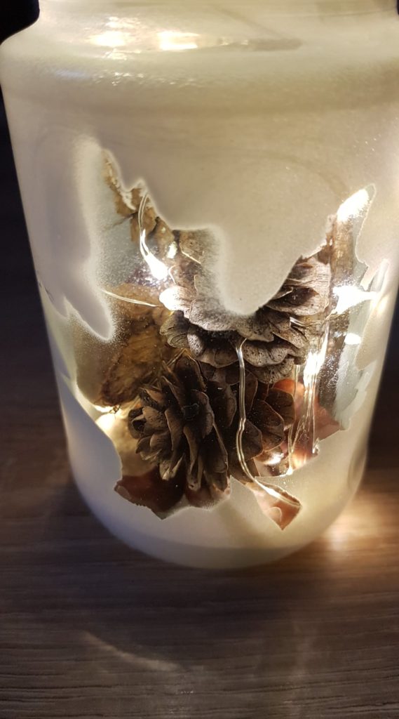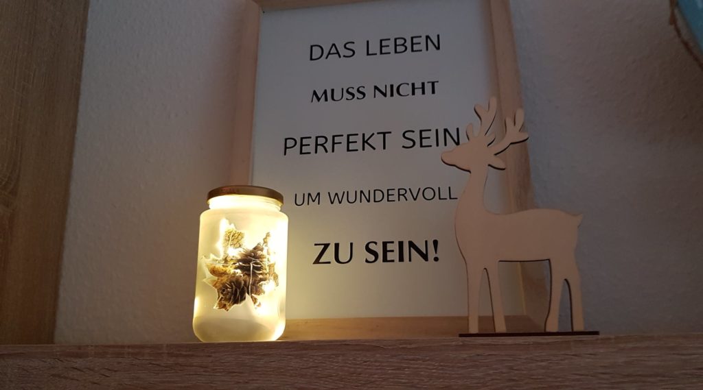 Ich verwende gerne Mini-Lichterketten (z. B. mit 20 LEDs). Sie sind sicher, langlebig und bringen das Glas wunderschön zum Strahlen – besonders, wenn man sie verschenkt.
